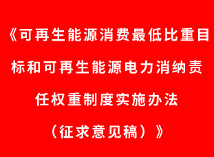 《可再生能源消費最低比重目標和可再生能源電力消納責(zé)任權(quán)重制度實施辦法(征求意見稿)》公開征求意見
